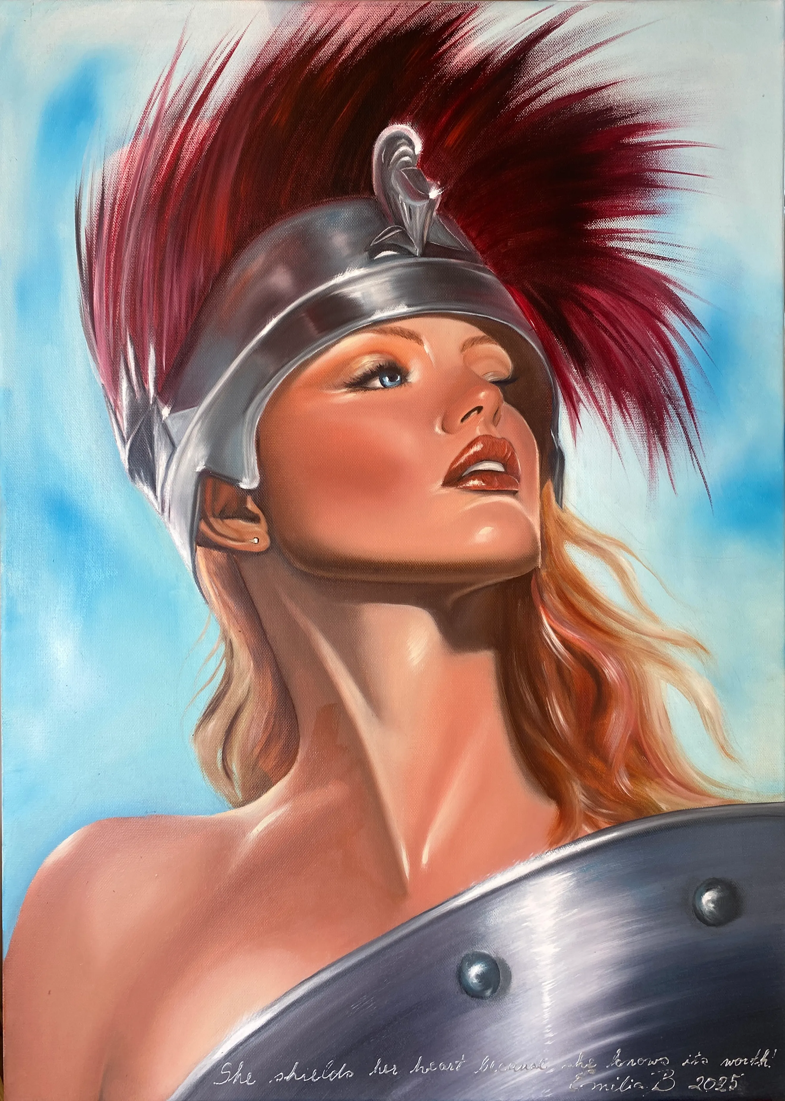 She carries her heart like a hidden flame—fierce, tender, untouchable. In shielding it, she shows not fear, but the quiet knowing of its worth. Her stillness is strength, her protection a sanctuary, a reminder that the heart is precious, and only those who see its light are invited in.